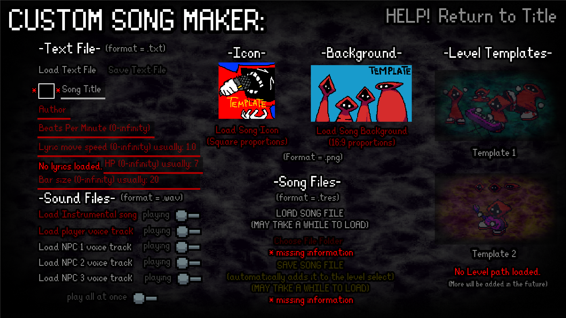 Make your own custom levels with the built-in Custom Song Maker! Grab sound files, images, lyrics and join them to create a level! You can share and import your own too!